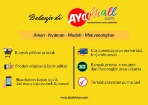 Rasanya nggak muluk-muluk jika Ayoomall.com menjanjikan pengalaman berbelanja yang aman, nyaman, mudah, dan menyenangkan. Bisa dilihat dari profil perusahaan yang berpengalaman, jaringan usaha yang banyak dan saling terhubung secara online, serta beragam keunggulan yang ditawarkan oleh Ayoomall.com tersebut. Jadi, persiapan kebutuhan barang traveling untuk #SiapDiJalan bisa dipenuhi cukup dengan berbelanja di Ayoomall.com.